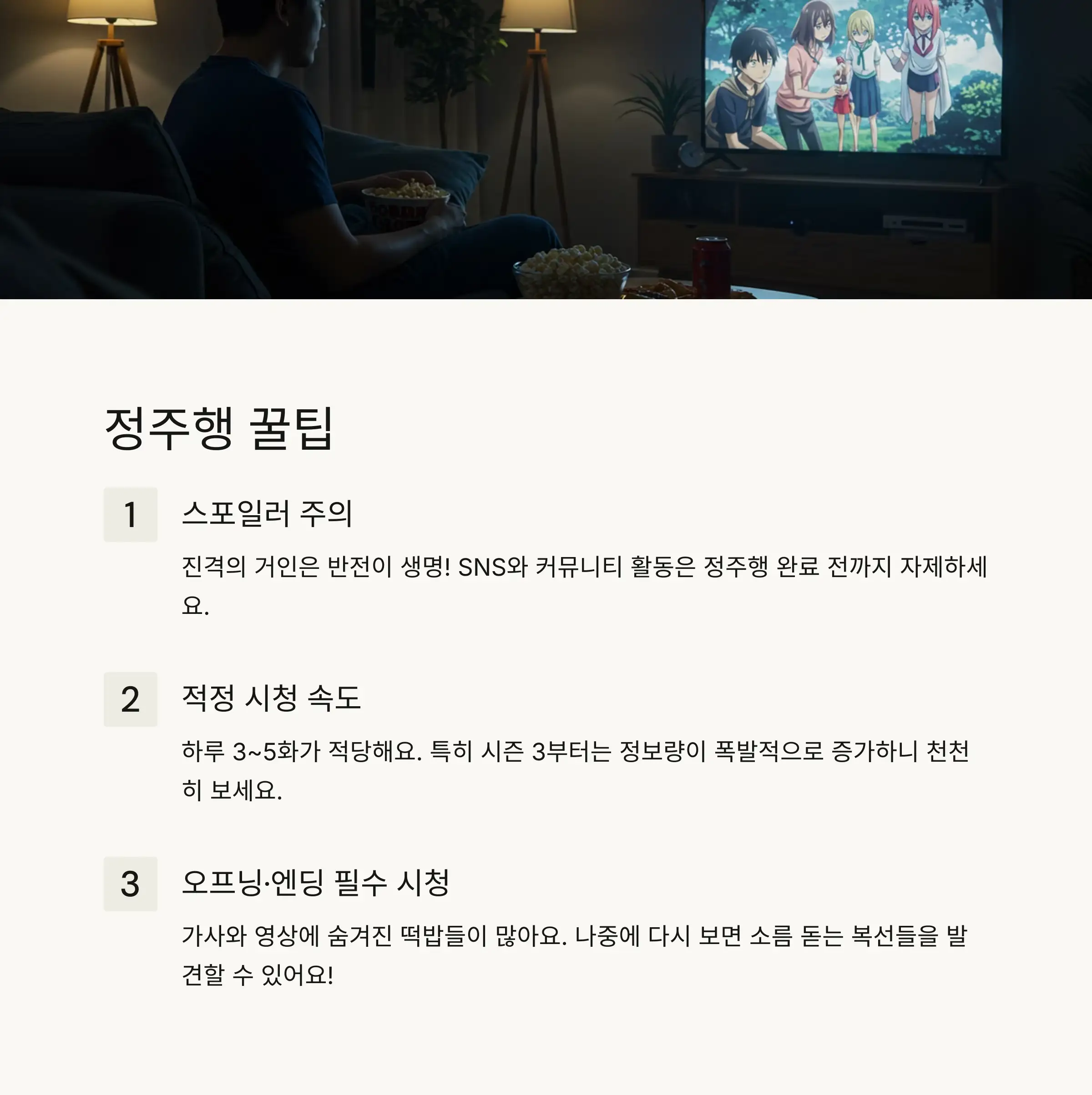 진격의 거인 정주행을 시작하기 전에 알아두면 좋은 꿀팁들을 공유해드릴게요! 먼저 가장 중요한 건 스포일러를 피하는 거예요. 진격의 거인은 반전이 생명인 작품이라서 스포일러를 당하면 재미가 반감될 수 있어요. SNS나 커뮤니티 활동은 잠시 자제하시는 게 좋답니다!